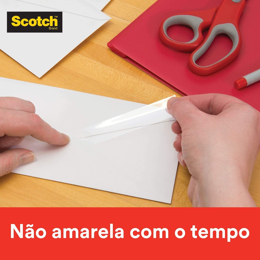 a Fita Adesiva Transparente Scotch da 3M fácilita o seu cotino com muito mais praticidade, sendo ideal para fechar pequenos e leves pacotes, presentes e embrulhos, além de auxiliar em tarefas realizadas em casa ou no trabalho. Acompanha um prático suporte, que te ajuda a evitar o desperdício e a perda da ponta, e fácilita o corte da fita. Eficiente, a Fita Adesiva Scotch cola com maior qualidade e fixa por mais tempo. Sua transparência deixa a colagem mais discreta.